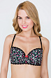 Бюстгальтер из эластичной ткани с цветочным принтом, декорированный узким кружевом и ярким бантиком по центру.Модель T-Shirt с формованной чашкой без Push-up для всех размеров.