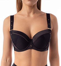 Бюстгальтер с градуированными чашками на поролоне и на каркасах. Идеально приподнимает и поддерживает грудь, создавая красивую зону декольте. На стане бюстгальтера вертикальные упругие, корректирующие пластины, позволяющие прилегать к телу и не скручиваться боковой части бюстгальтера. Бретели несъемные. Украшение: декоративный элемент на стане в виде галстука.