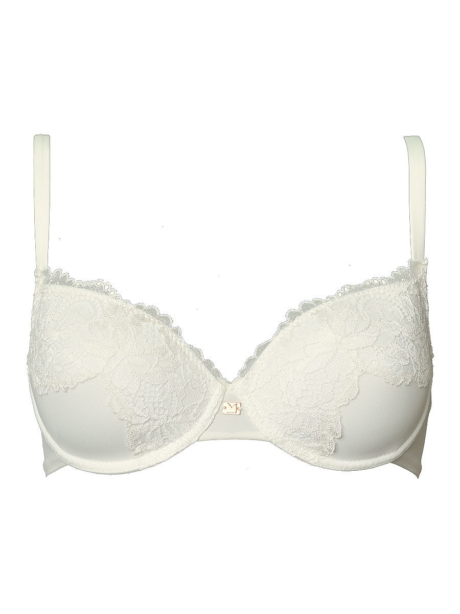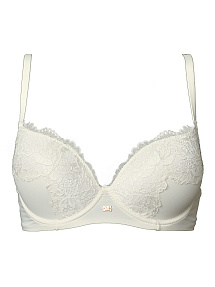 Бюстгальтер-балконет на косточках с эффектом второй кожи. Легкая прокладка SUPERSOFT обеспечивает комфорт. Дублированные эластичной сеткой бочки. Несъемные бретели, обтянутые мягкой тканью. Застежка в два ряда на 4 позиции. Выполнен с использованием элегантного кружева, декорирован подвеской из золота.