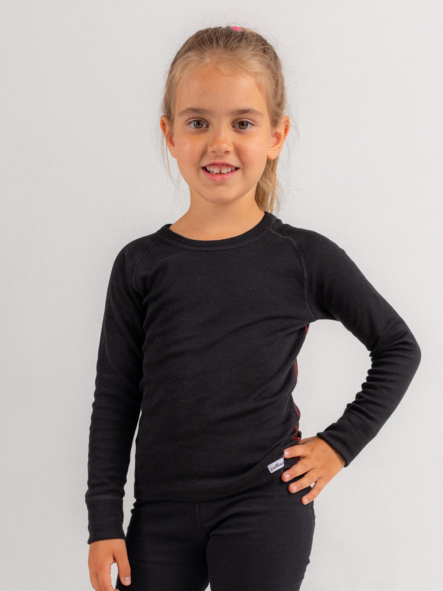 Мягкая детская термофутболка с длинным рукавом с дополнительными утепляющими вставками из флиса. Рассчитана на активный досуг: катание на санках, игры
