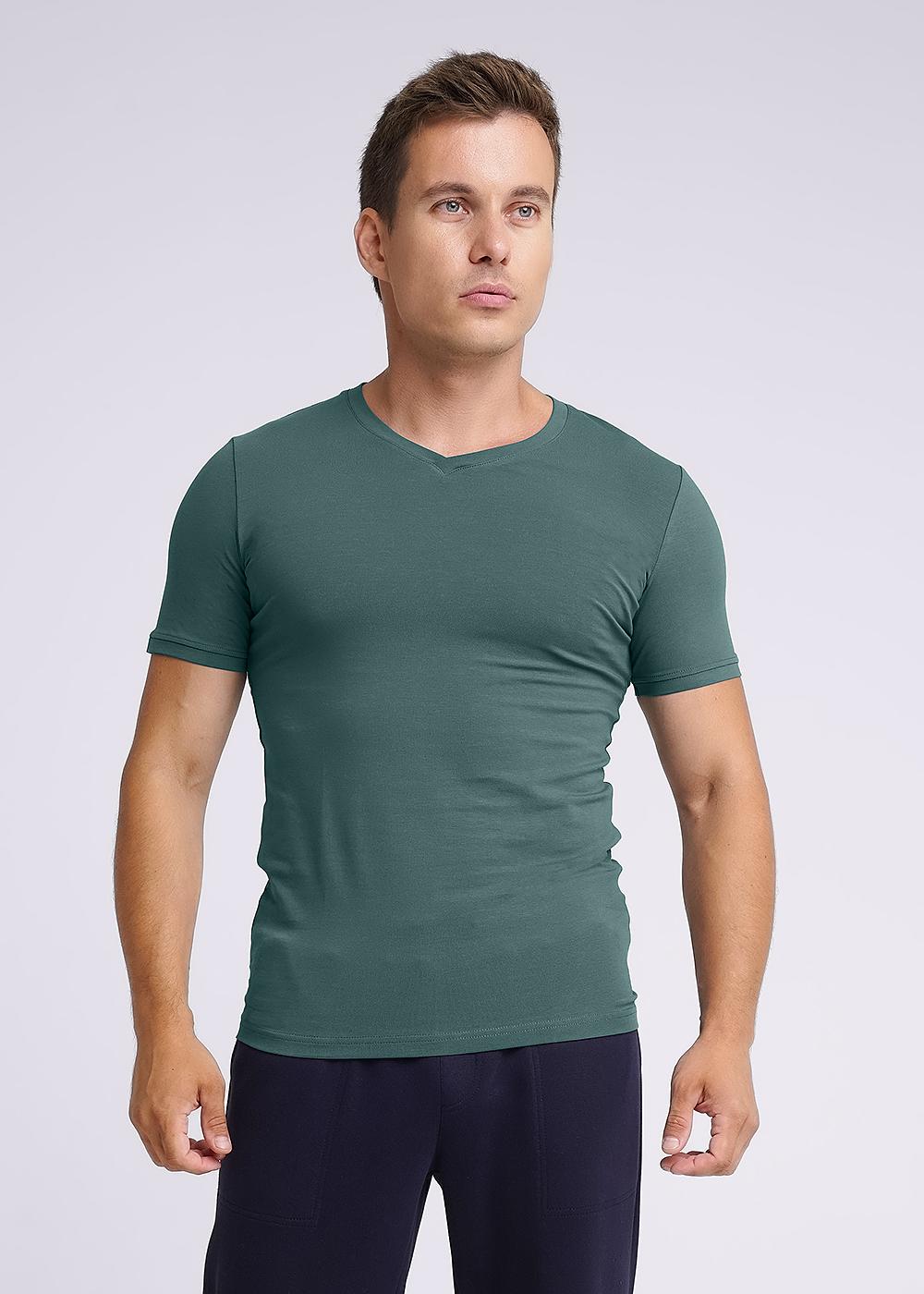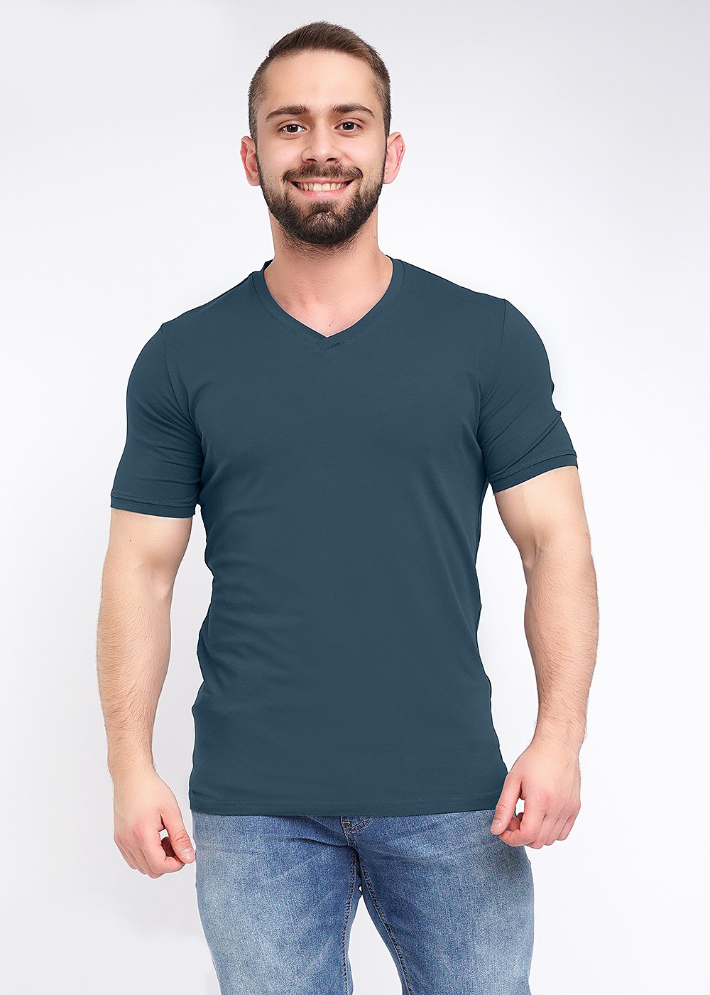 Стильная молодежная футболка с v-образным вырезом горловины из качественного полотна с большим содержанием хлопка. Отличный вариант для повседневной носки в комплекте с брюками.