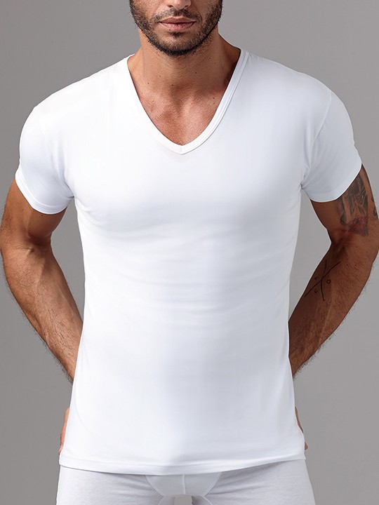Стильная мужская футболка с коротким рукавом и V-образным вырезом горловины. Идеальный вариант для повседневной носки.