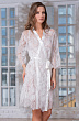 Халат Mia-Amore выполнен из тончайшего французского кружева Шантильи (Chantilly) с изысканным рисунком по низу халата и рукавам. По переду халата планка из шелкового атласа. Пояс халата выполнен из атласа.