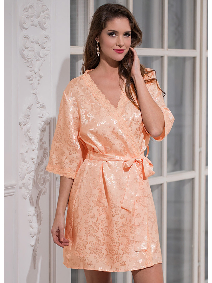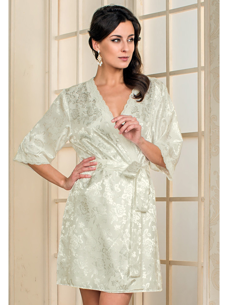 Классический короткий халат-кимоно Mia-Mella из искусственного шелка с жаккардовой основой.