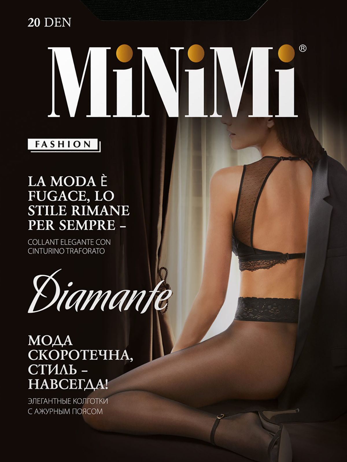 Бренд: Minimi Артикул: Diamante 20 Состав: 92%п/ам 7%эл.1%полипр. Страна: Италия Размер: 2 Цвет: Abbronzante