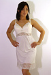 Комбинация выполнена в виде отрезного лифа и волана по низу юбки. Лиф и волан-из сетчатого полотна с вышивкой.