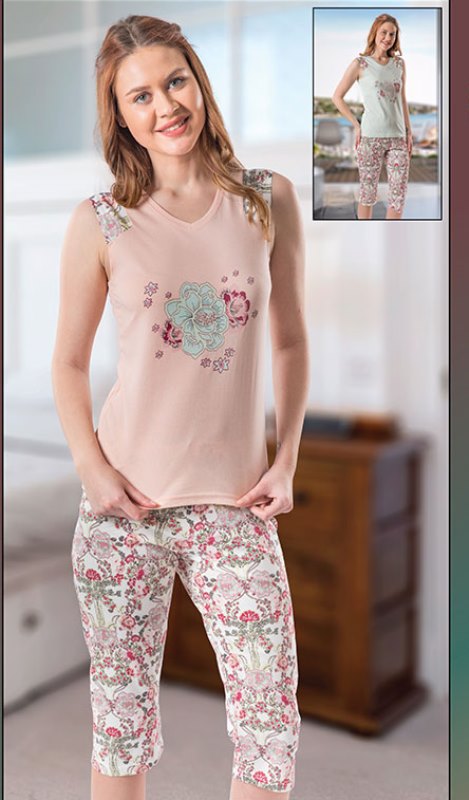 Состав изделия домашней одежды для женщины и муж.: Комплект ( бриджи + майка )