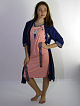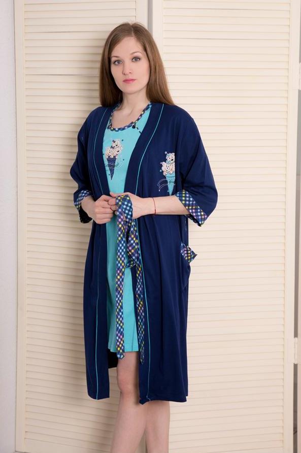 Комплект женский двойка. Туника с коротким рукавом, свободной формы, оформлена пуговицами, вырез горловины круглый. Халат рукав 3/4, на запах под пояс, с карманом.