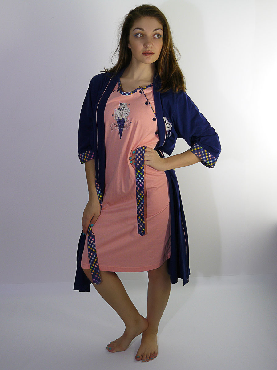 Состав изделия домашней одежды для женщины и муж.: Комплект ( сорочка + халат )