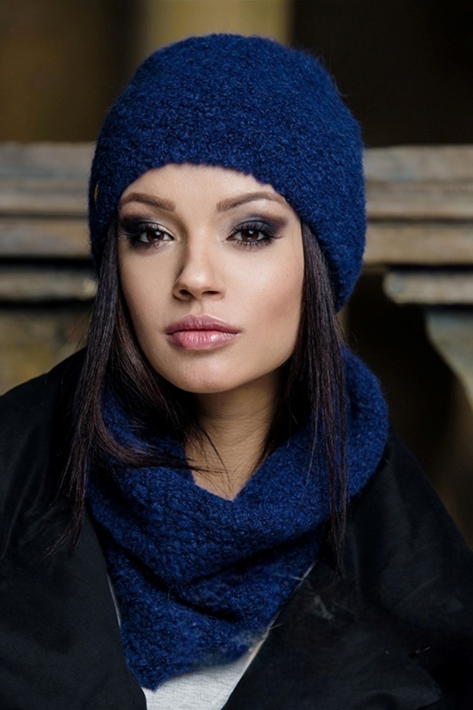 Элегантный комплект из мягкой буклированной пряжи (Удлиненная шапочка одинарной вязки и шарф-кольцо из воздушной пряжи букле).