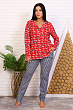 Костюм женский домашний. Кофта на пуговицах, свободного кроя с длинным рукавом. Брюки прямые, имеются карманы. Яркий костюм с новогодней тематикой будет замечательным подарком к наступающим праздникам.