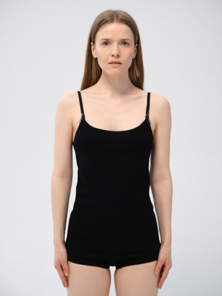 Майка женская на тонких бретельках с нежной кружевными вставками без боковых швов. Полотно на основе хлопка позволяет коже «дышать» и регулирует микроклимат, поэтому в нём приятно находиться. Немецкий бельевой стандарт в современной интерпретации!