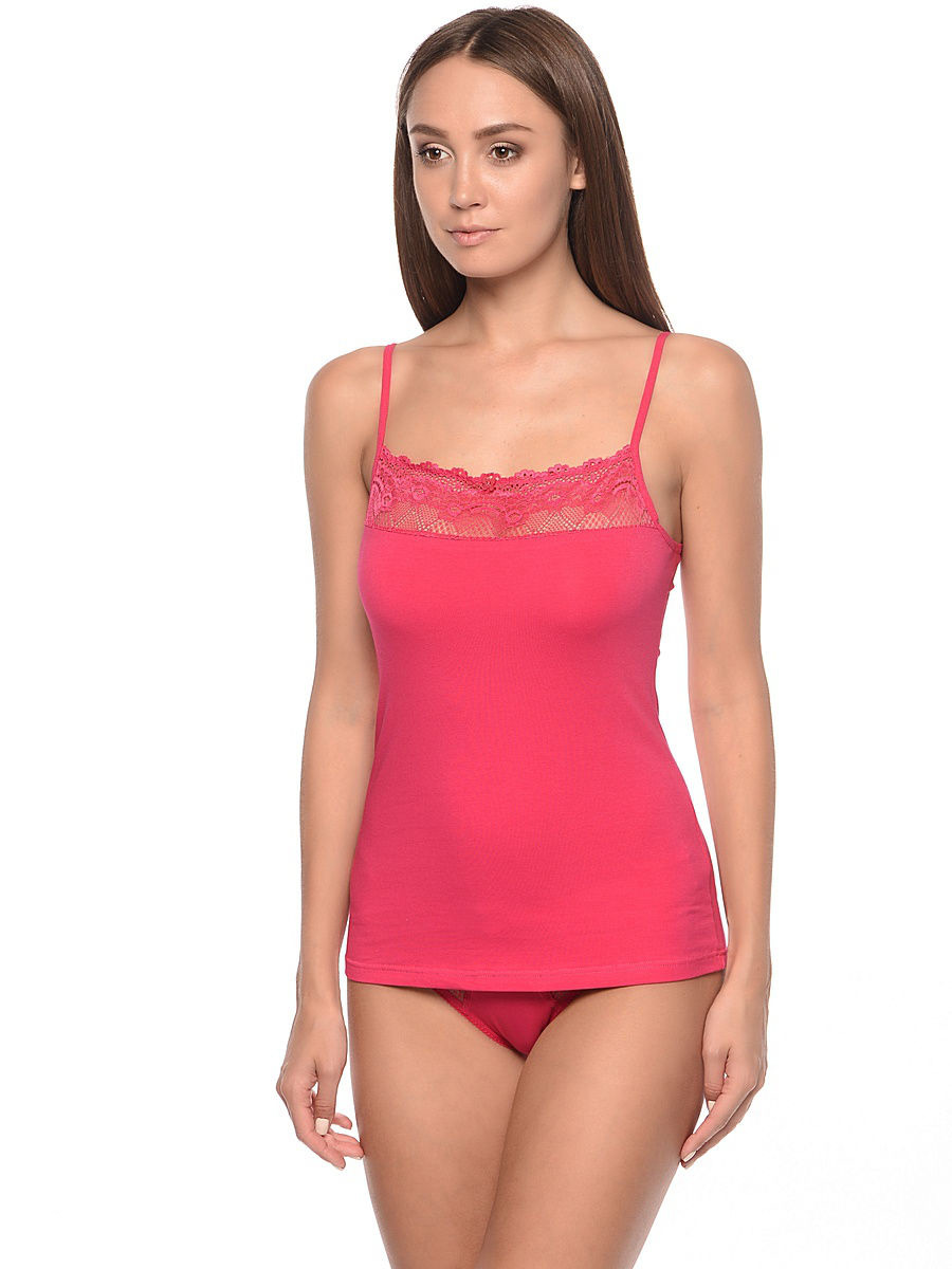 Топ на тонких бретелях. На передней части декоративная кружевная вставка.