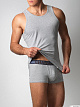 Классическая мужская майка-борцовка для дома и отдыха. Модель облегающего силуэта выполнена из мягкого трикотажного полотна. Нашивка внизу изделия – с фирменным логотипом.