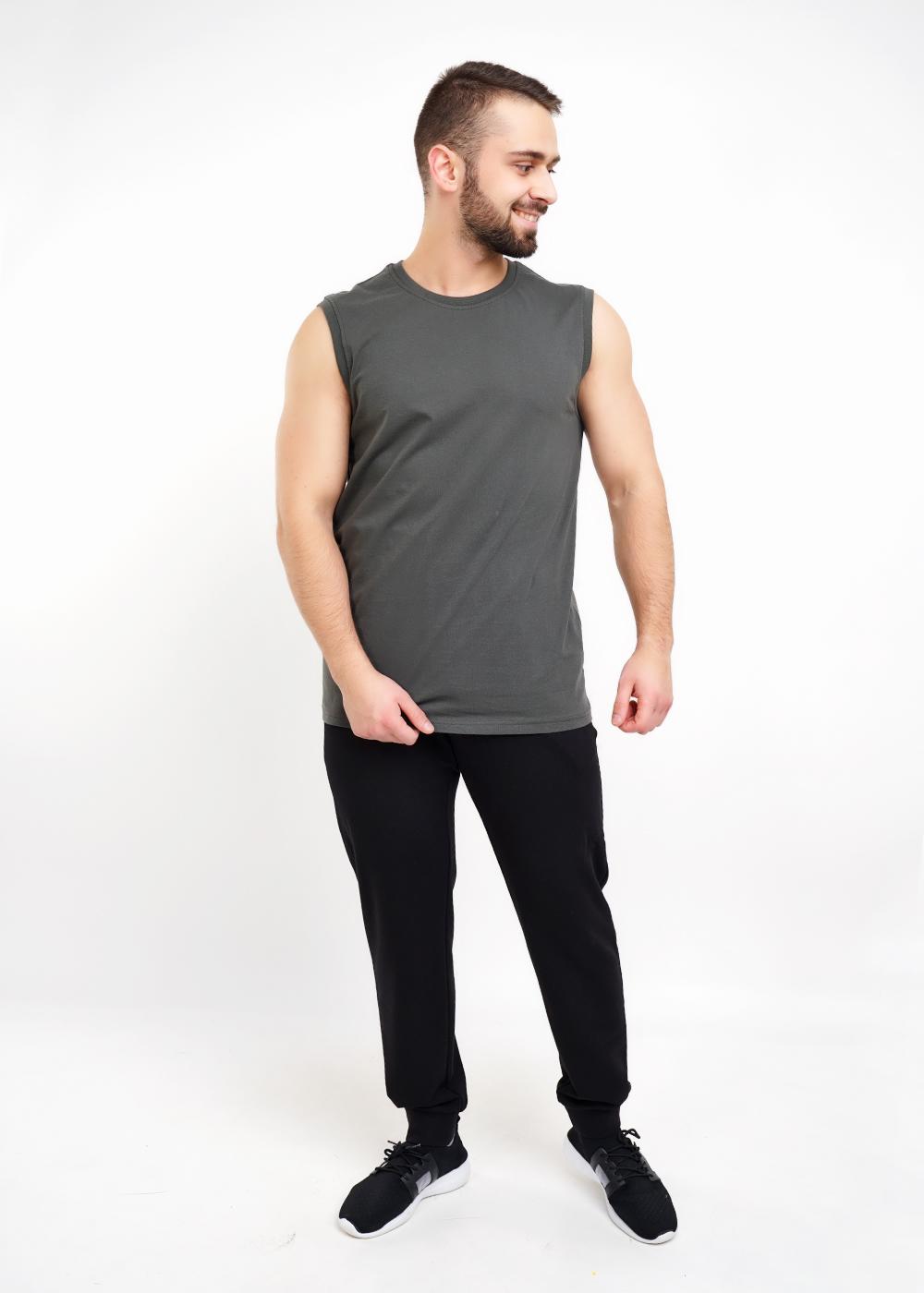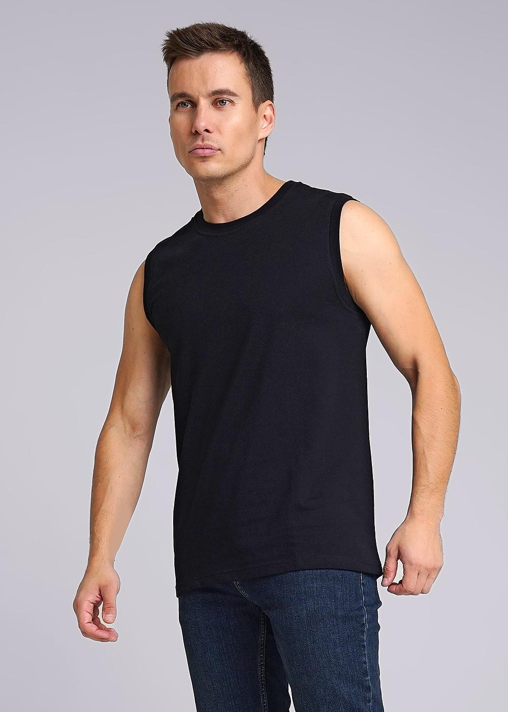 Майка с широким плечом, круглым вырезом горловины, свободного кроя. С окантовкой из рибаны по горловине и рукаву. Плотность:130-140 гр/м2