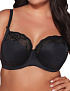 Бюстгальтер выполнен с шитыми мягкими чашками на косточках. Бретельки регулируются по длине, не отстёгиваются. На спине застёжка на удлинитель, количество крючков в ряду застёжки увеличивается пропорционально размеру бюстгальтера. Фурнитура металлическая цвета меди.