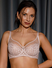 Бюстгальтер мягкая чашка 7050 - сочетает в себе легкость и комфорт. Несмотря на кажущуюся прозразчность, обеспечивает стабильную поддержку для больших размеров. Надежный пояс изделия усилен боковыми пластинами. Украшение - бантик с жемчужинкой.
