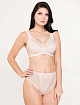 Бюстгальтер из эластичного трикотажа и кружева отличается особым удобством благодаря широким бретелям, способным облегчить нагрузку на плечи. Чашки на каркасах, выполненные из трех деталей продублированы х\б тканью.