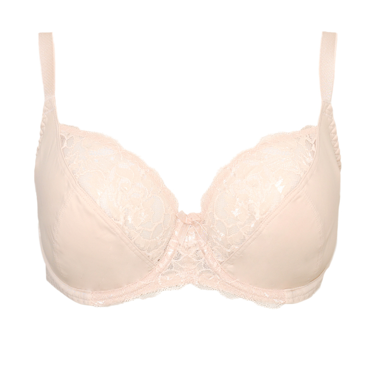 Бюстгальтер из эластичного трикотажного полотна и эластичного кружева. Мягкие чашки на каркасах с тройным диагональным членением, такая конструкция создает округлую форму груди. Используется четырехрядная застежка, что позволяет идеально отрегулировать объем бюстгальтера. Ширина бретелей и застежки изменяется в зависимости от размера бюстгальтера.