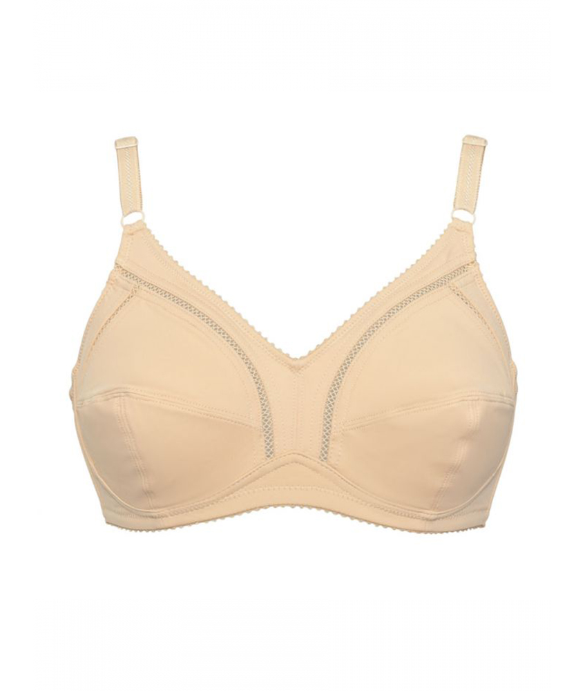 Классический бюстгальтер из гладкой стрейч-микрофибры. Мягкая чашечка на кости, продублирована хлопком, декорирована ажурной вышивкой. Бретели регулируются.