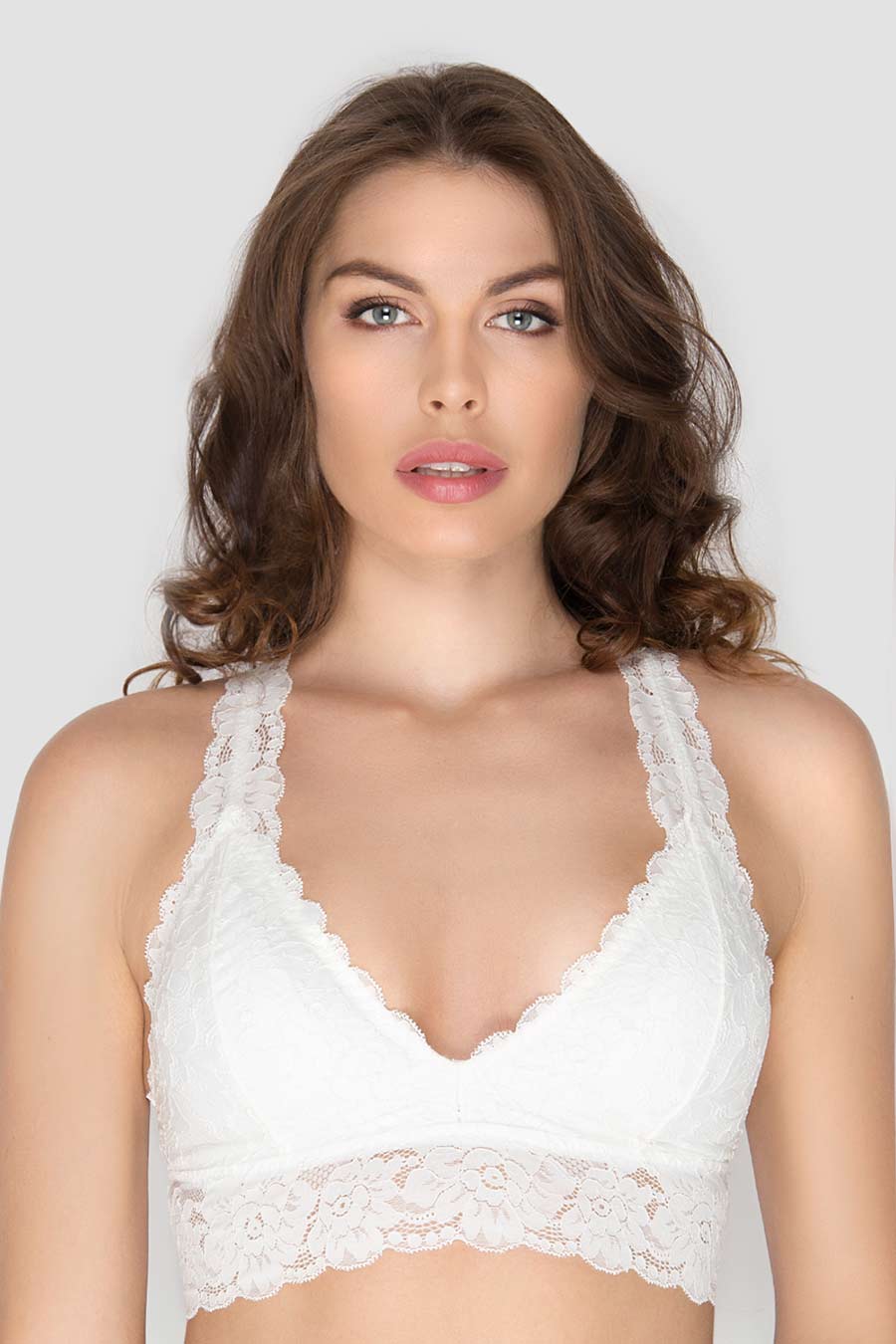 Бюстгальтер с треугольными чашечками . Внутри чашки расположены специальные съемные поролоновые вкладыши, придающие груди еще более притягательную округлую форму. Нежнейший цветочный орнамент кружева, широкий стан – образ, который завораживает и интригует.