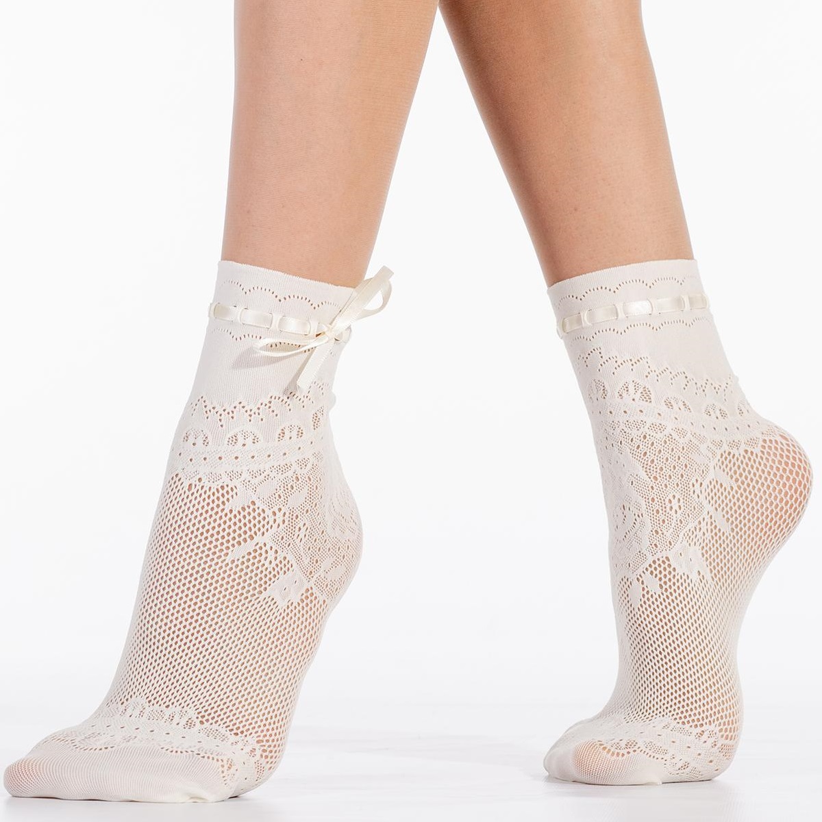 FIORE RETE calzino - оригинальные ажурные эластичные носочки в сетку с тонкой атласной ленточкой для подвязывания. Свободного размера (один размер). Уплотненный мысок. 1 пара в упаковке.