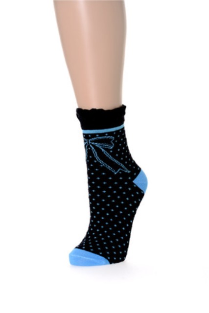 Женские носки в мелкий горошек и рисунок-бантик на паголенке.