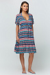Пляжное платье из принтованной вискозной ткани, декорированное V-образным вырезом декольте и оборкой по низу изделия. Линия талии обработана кулиской для обеспечения лучшего прилегания. Рукав цельнокроеный, короткий.
