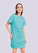Платье-футболка из футера 3-х нитки. Округлая горловина из кашкорсе. Спущенная линия плеча. Завершает дизайн принт.