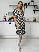 Домашнее платье рубашечного кроя, на пуговицах спереди, с коротким рукавом.
