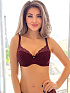 Бюстгальтер "полупоролон" из материалов компаньонов: кружевного полотна и эластичного кружева. Стан бюстгальтера выполнен из упругого полотна soft. Нижние детали чашек продублированы хлопком. Уникальность данной модели заключается в том, что она соединила в себе 3 конструкции: и бюстгальтер "полупоролон", и бюстгальтер на поролоне и бюстгальтер типа "балконет". На стане бюстгальтера боковые корректирующие пластины, позволяющие прилегать к телу и не скручиваться. Украшение: атласный бантик подвеской.