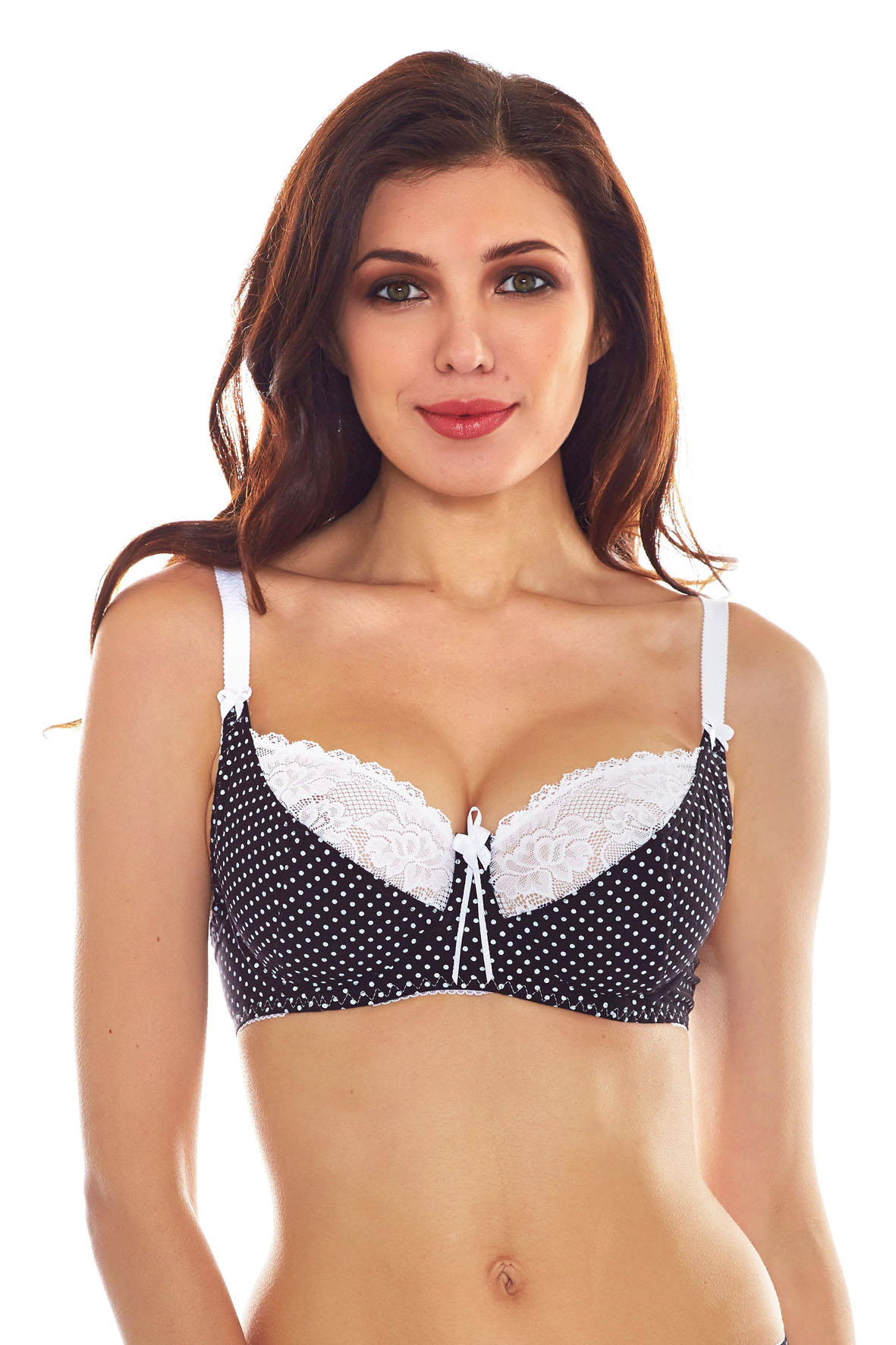 Бюстгальтер Coquette Revue из коллекции Ekaterina с чашками-полупоролон на каркасах. Выполнен из эластичного х/б полотна и х/б кружева. Впереди бюстгальтер украшен атласным бантиком. Выпускается в белом, черном, бежевом цветах, а также в ткани в мелкий горошек.