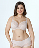 Бюстгальтер "Semi Soft" на каркасе, с Т-образным сечением по чашке, разработан для обладательниц "пышной" груди. Чашка выполнена из эластичного кружева, нижняя часть продублирована ламинатом из поролона и хлопка. Конструктивной особенностью является плавный переход кружевного низа чашки в бретель, тем самым придавая чашке форму "капельки", именно этот элемент делает чашку бюстгальтера закрытой, "глубокой", превосходно фиксирующей грудь. Эластичная бретель с краем "пикотом" декорирована контрастным цветом в тон бантикам.