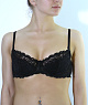 Бюстгальтер балконет с полумягкой чашкой и плотной сшивной внутренней частью, со съёмными бретелями.