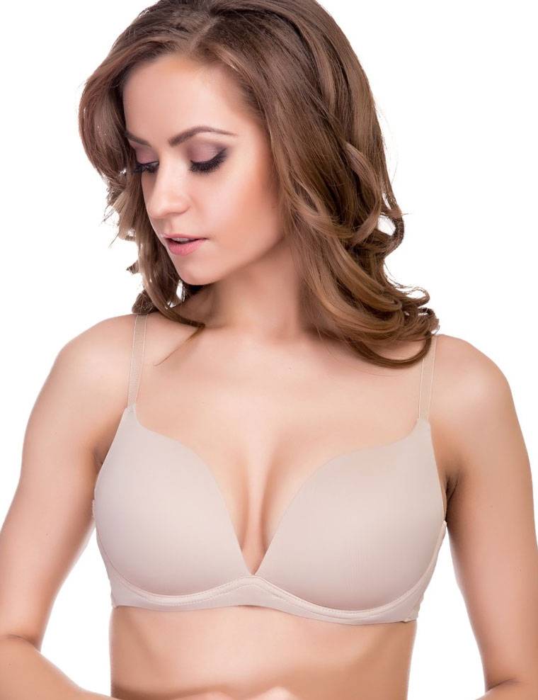 Бюстгальтер балконет с формованной чашкой пуш-ап из мягкой эластичной микрофибры , без каркасов . Предназначен для девушек, предпочитающих комфортные конструкции. Чашки максимально близко сведены друг к другу, что позволяет формировать линию декольте. Бретель несъемная.