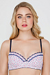 Бюстгальтер из эластичной хлопковой ткани с цветочным принтом, декорированный узким кружевом и атласным бантиком по центру.Модель T-Shirt с формованной чашкой со съемными Push-up вкладышами для всех размеров. Бретели регулируемые, съемные.