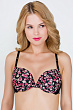 Бюстгальтер из эластичного принтованной ткани и кружева, декорированный бантиком.Модель классической формы с формованной чашкой с Push-up для размеров 70AB, 75ABC, 80B и без Push-up для размеров 70C, 75DE, 80CDE, 85BCD.Бретели несъемные.