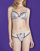 Бюстгальтер из принтованной атласной ткани и эластичной жаккардовой сетки, декорированный узким кружевом и бантиком по центру.Модель классической формы с формованной чашкой с Push-up,Бретели эластичные, несъемные,