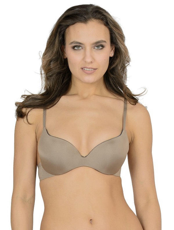 Бюстгальтер с формованными градуированными чашками из гладкой микрофибры, глубоким вырезом между чашками, на тонких бретелях. Невидимые швы позволяю носить модель под любую одежду.