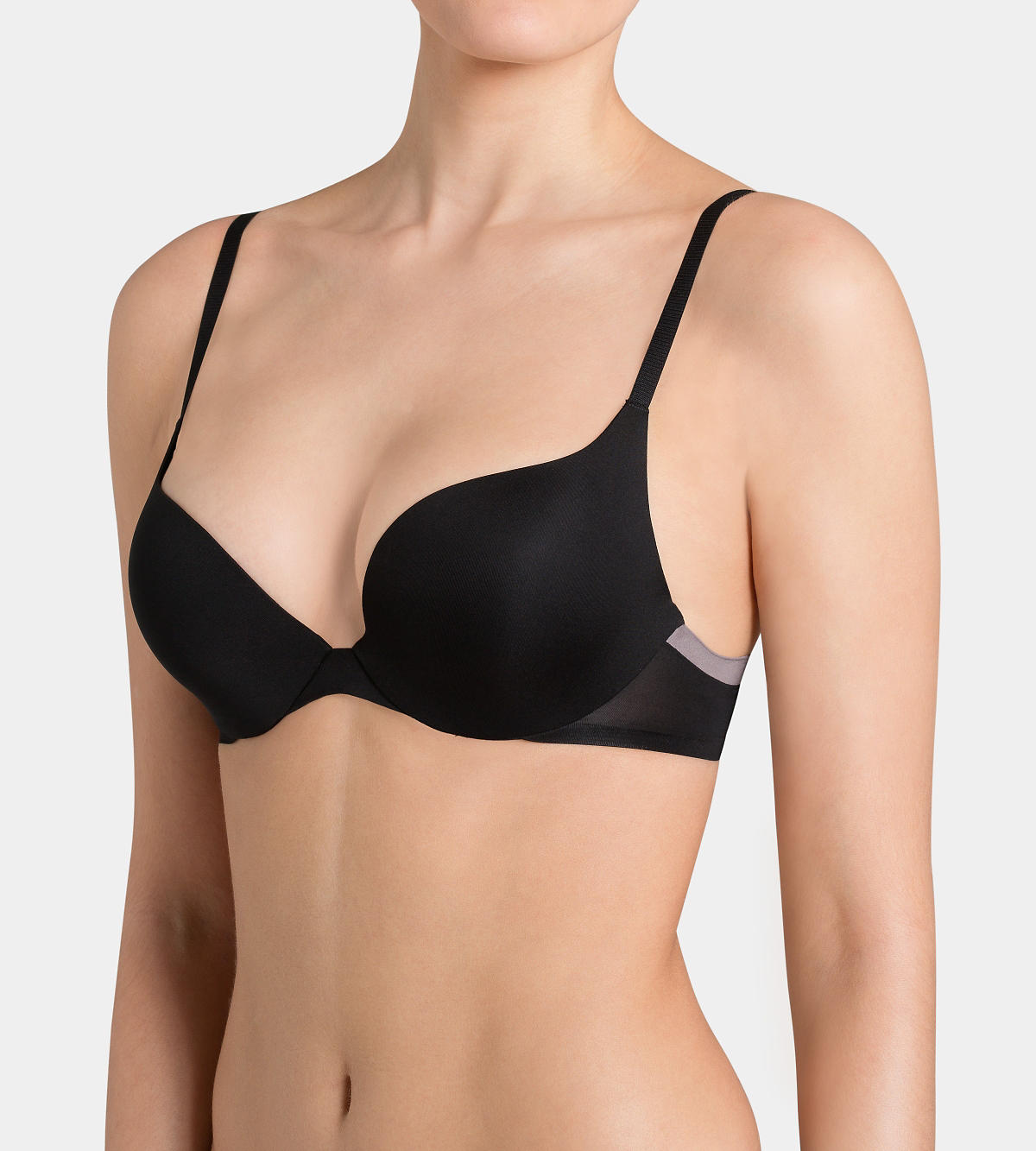 Бюстгальтер пуш-ап с плотной чашкой имеет интегрированный Push-Up, эффектно приподнимающий грудь и придающий декольте соблазнительный, сексуальный вид. Усовершенствованный материал приятный к телу добавляет моделям устойчивость к появлению катышек. Мягкая внутренняя часть чашек бюстгальтера обеспечивает комфорт на целый день. Плоские швы трусов и бюстгальтеров незаметны под одеждой.
