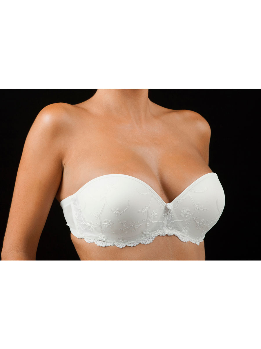 Бюстгальтер для невест, на косточках, без бретелей, чашка пуш-ап с наполнителем, из вышитого тюля. Включает комплект тестильных бретелей.