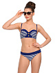 Эффектный раздельный купальник в стиле ретро. Бюст – формованный балконет с каркасной поддержкой. Фиксируется при помощи регулируемых съемных завязок и фирменной застежки на спине. Силиконовая лента по нижнему краю бюста – для идеального прилегания. По центру изделие оформлено декоративными металлическими пуговицами. Плавки классической посадки с откидным контрастным поясом – для моделирования линий фигуры. Комплект выполнен в модной манере сочетания контрастного однотона и морского принта «Большая регата».