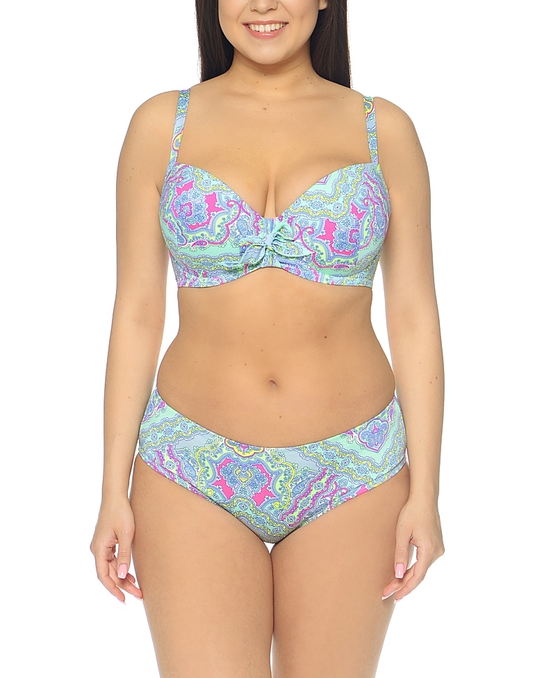 Купальник раздельный. Состоит из бюстгальтера и трусов. Бюстгальтер с формованной чашкой. Детали бюста выполнены их классического купального полотна. Бретели эластичные, состоят из двух частей.Трусы классические.