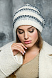 Шапка удлиненной формы с фиксированными защипами сзади. Модель на флисовой подкладке. Использованы различные сочетания разных видов пряжи.