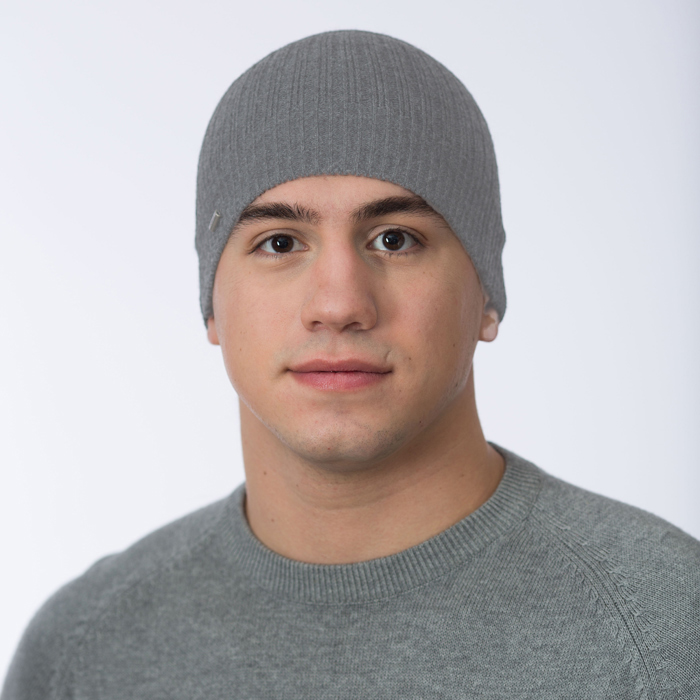 Шапка по голове, цельновязаная бесшовная. Декор: металлическая бирка