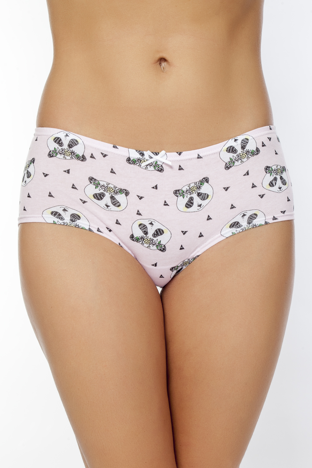 Трусики-шорты из высококачественного хлопка с милым монохромным принтом "панды". Передняя половинка украшена по центру бантиком.