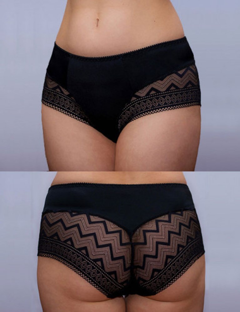 Трусы-слип комфорт с завышенной линией талии. Выполнены из микрофибры без блеска и эластичного кружева с арнаментом "полоска". Ультратонкое эластичное кружево, как "вторая" кожа. Идеально подходят для обтягивающих брюк и юбок.
