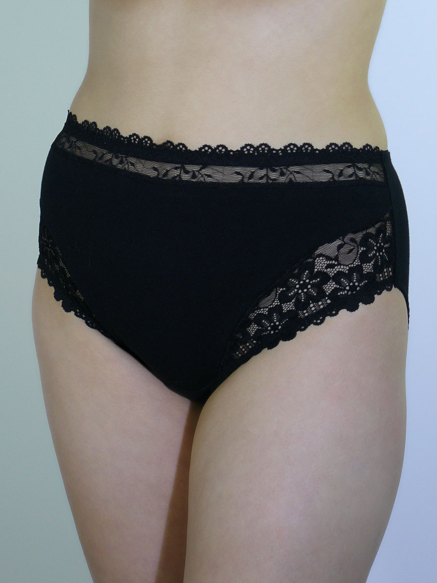Трусики из эластичного хлопкового полотна, отделка - эластичное кружево по верхнему и нижним срезам передней детали.