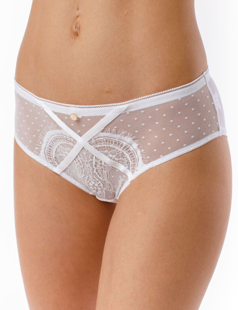 Трусы-слип со средней линией талии.,выполнен из эластичного кружева и эластичной сетки. Украшение металлические пуговицы.