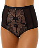 Трусы-макси с высокой линией талии. Выполнены из эластичного кружева и эластичной сетки. Украшение: медальон с логотипом COQUETTE REVUE.